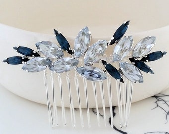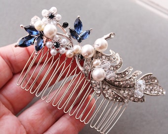 Amazon Com Aimimier Bridal Sapphire Crystal Hair Comb Pearl Blue Crystal Leaf Marquise Hair Piece Prom Party Festival Wedding Hair Accessories For Women And Girls Silver Beauty Personal Care
